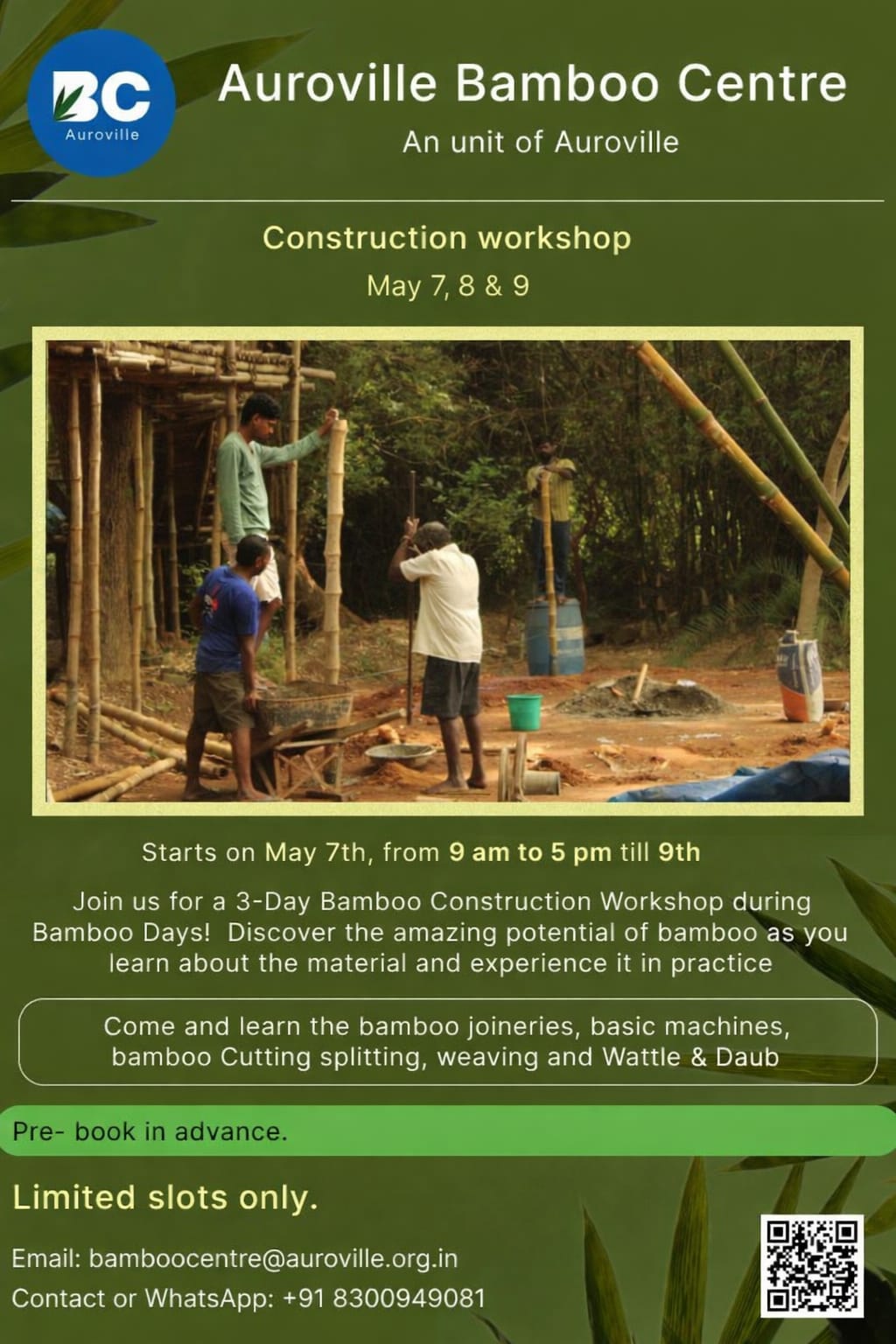 Come and learn the bamboo joineries, basic machines, bamboo Cutting splitting, weaving and Wattle & Daub