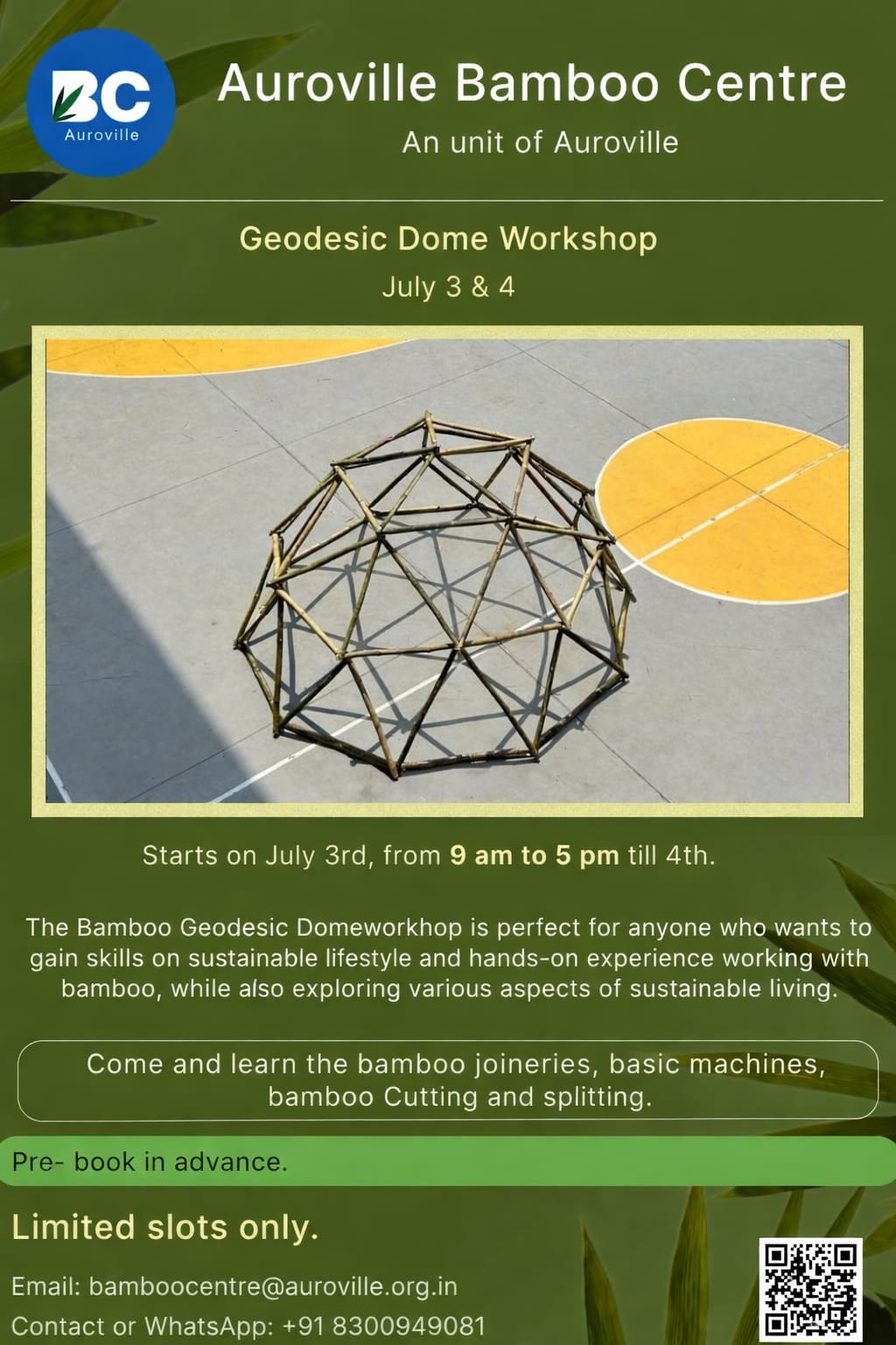 The Bamboo Geodesic Domeworkhop is perfect for anyone who wants to gain skills on sustainable lifestyle and hands-on experience working with bamboo, while also exploring various aspects of sustainable living.